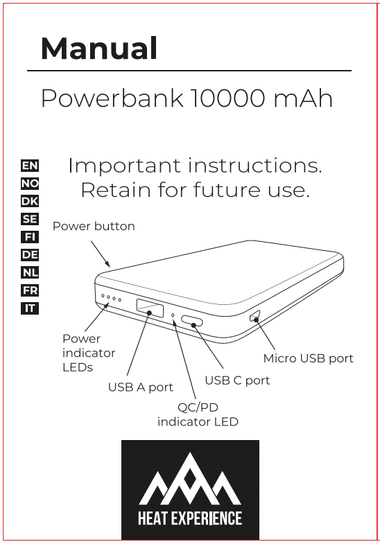 Powerbank de Heat Experience avec une capacité de 10.000mAh. Peut être utilisé comme source d'énergie pour les appareils mobiles ou certains vêtements Heat Experience.